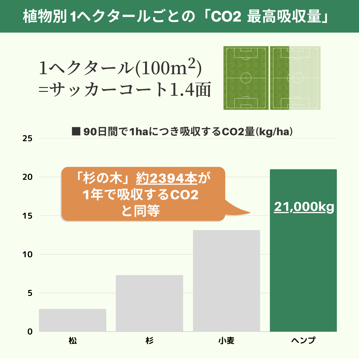 (※松の木が約20年かけて吸収できる量を、ヘンプはたった90日で吸収できる)。)